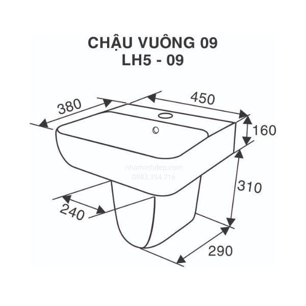 - Tên sản phẩm: Chậu Rửa Lavabo treo tường Vinaloha LH5-09 vuông, kèm chân lửng